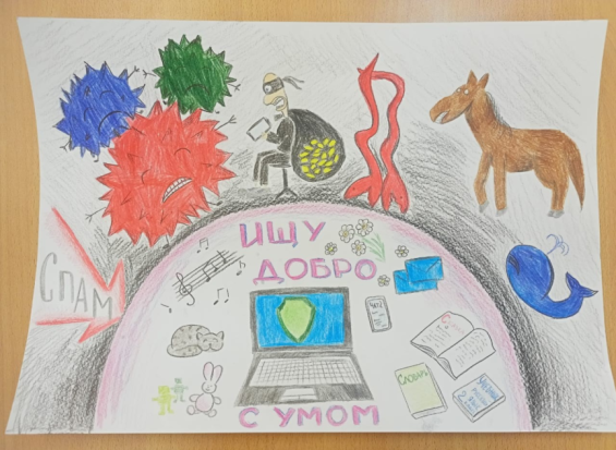 Ученица 2А класса Зоя Г. заняла III место в номинации "Художественное творчество" с работой "Ищу добро с умом!"